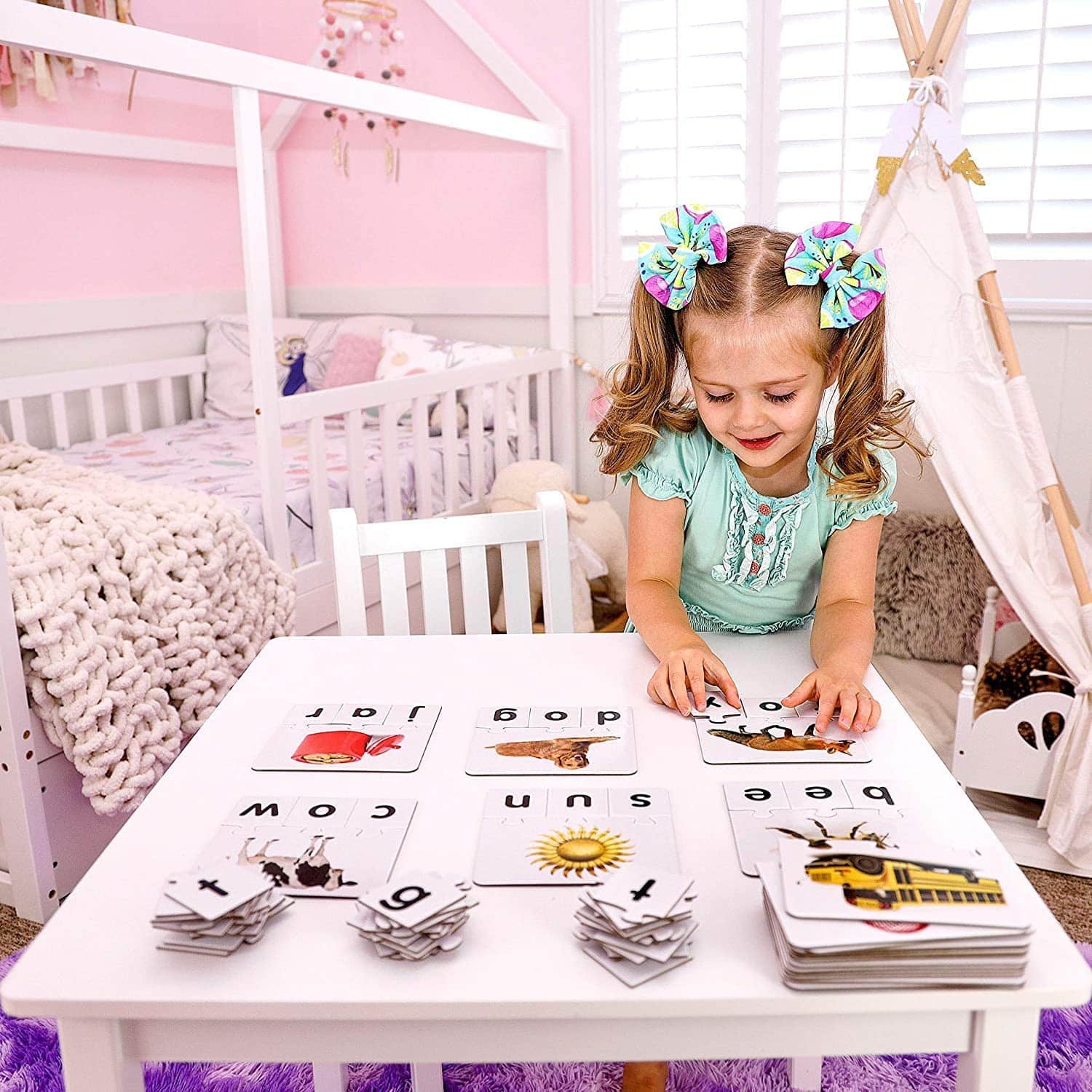 • The puzzle pieces are self-correcting so only the right spelling goes together! The set includes 20 puzzle sets.