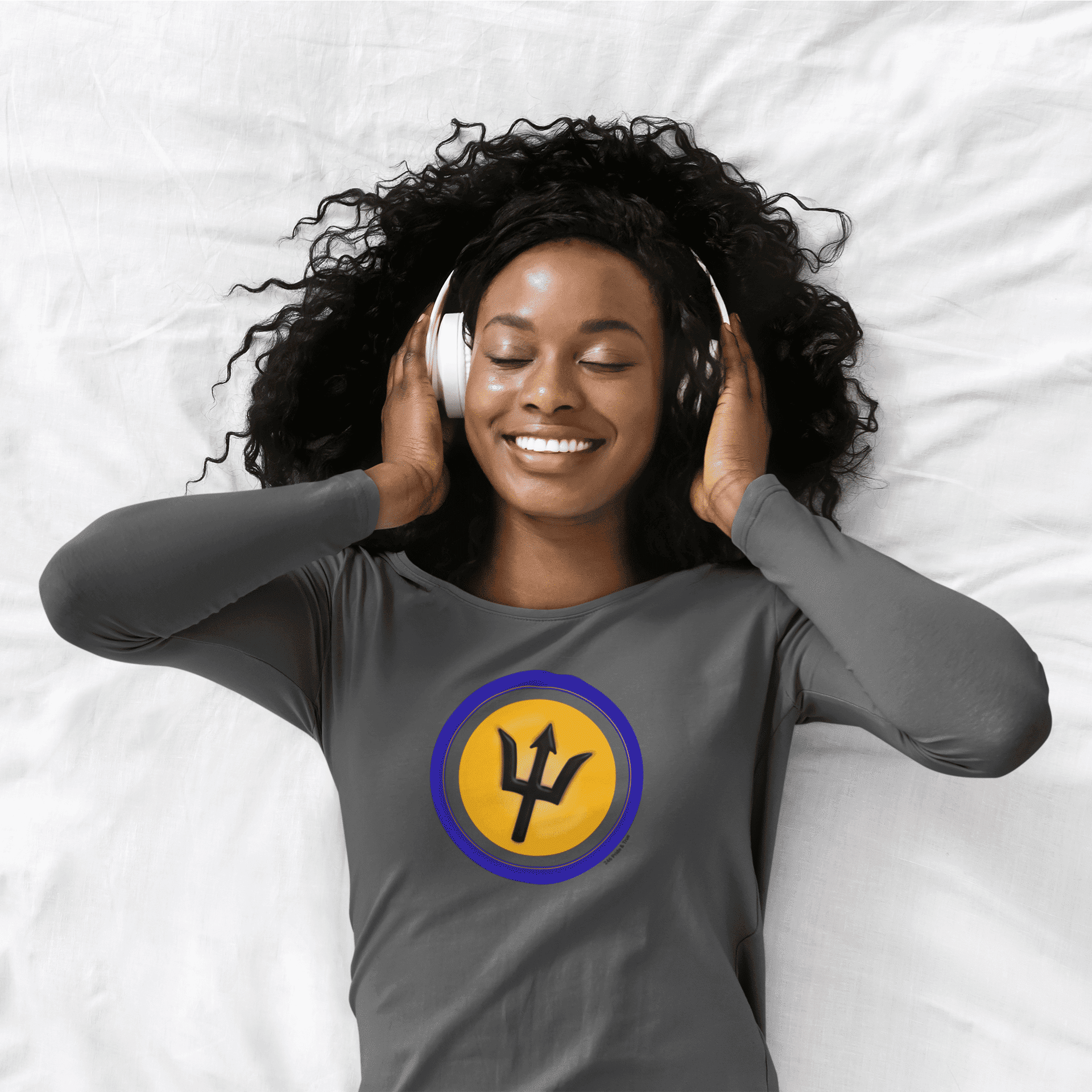 246 Pride & True – Blue & Yellow Paint Swashes & Black Grainy Trident Graphic