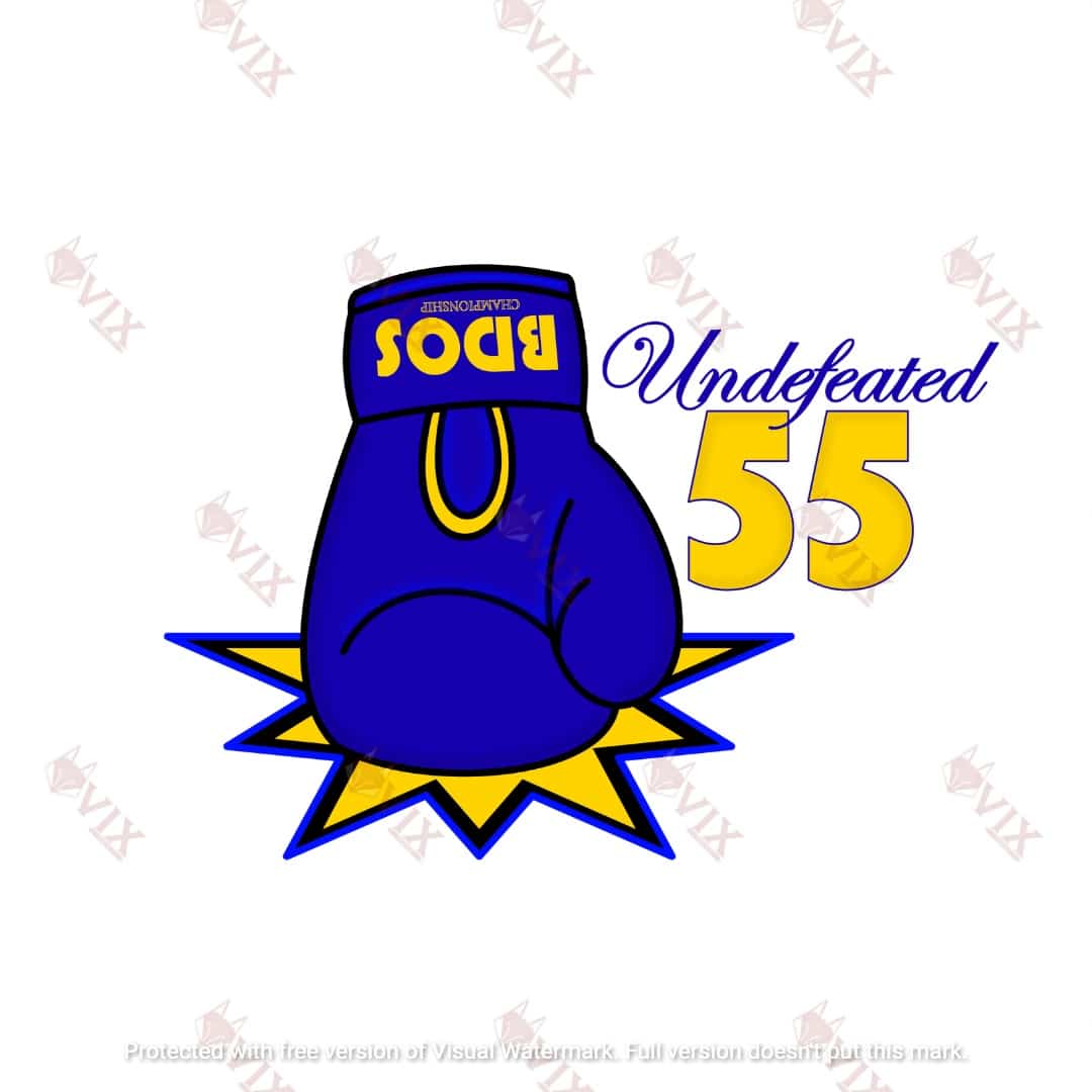 - Blue “Undefeated” & Yellow w/ Blue Outlline “55”
