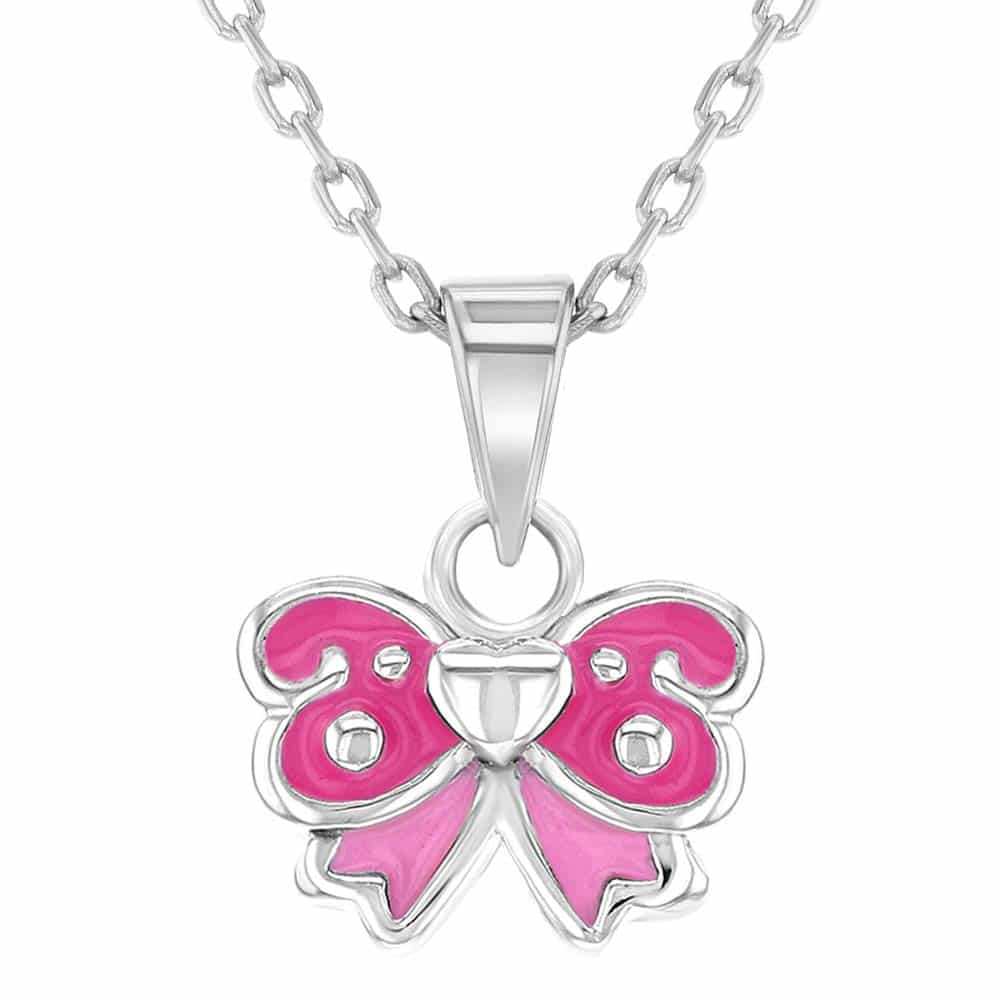 925 Pink Sterling silver bow necklace and pendant