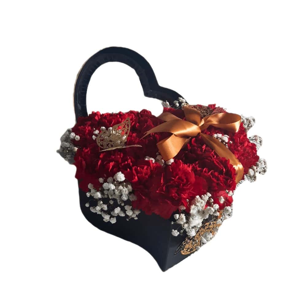 - Heart box with Carnations & Babyās breathe Arrangement