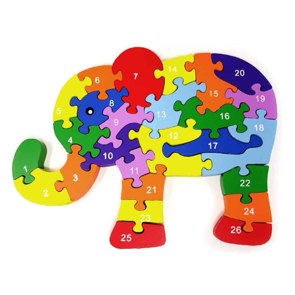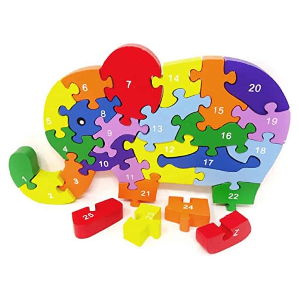 Honbay Colourful Wooden Elephant Jigsaw Puzzle for Kids Aged 3-7 (Letters and Numbers)