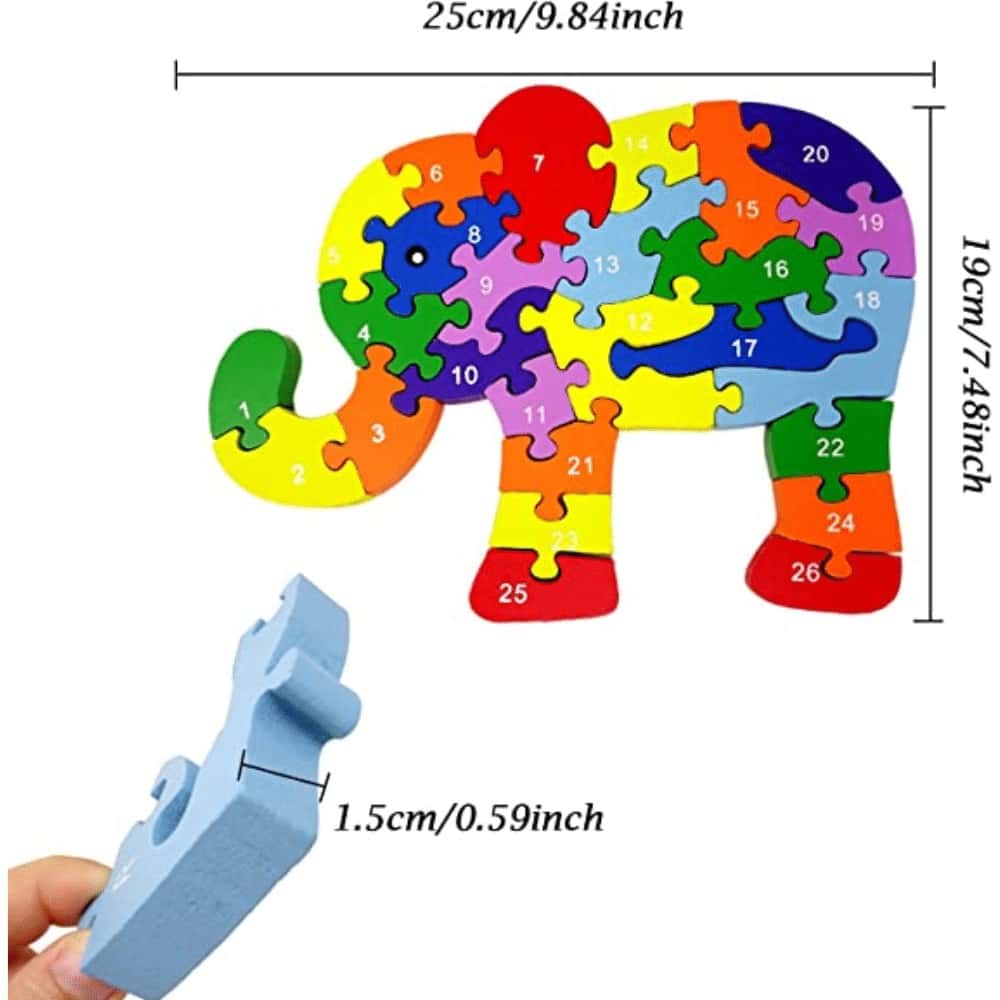 Home Toys & Games Learning & Education Learning Puzzles Jigsaw Puzzles Honbay Colourful Wooden Elephant Jigsaw Puzzle for Kids Aged 3-7 (Letters and Numbers)