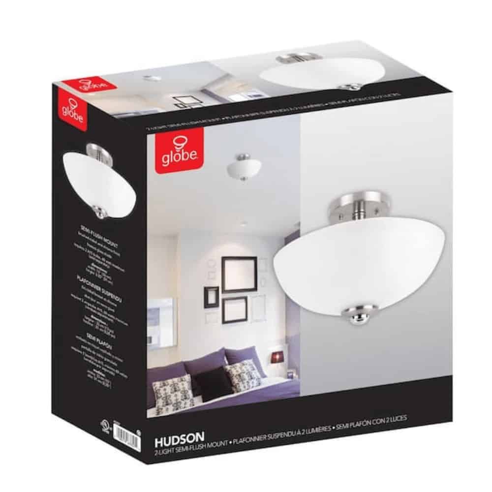 Be the first to review “Hudson 2-Light Semi-Flush Mount Brush Nickel and Chrome Finish Frosted Glass Shade” Cancel reply