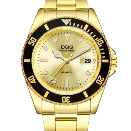 Men’s Gold & Black Stainless Steel Watch With Date