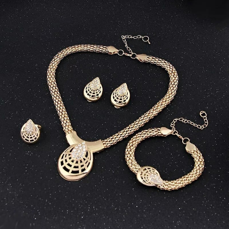 4PCs: Chain, Earrings, Bracelet and Ring