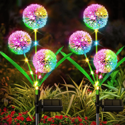 2 pack, Dandelion Solar Powered, Garden Outdoor LED Flower Stake Lights, Waterproof For Garden, Yard, Patio, Flowerpots, Walkways, Wedding Decoration