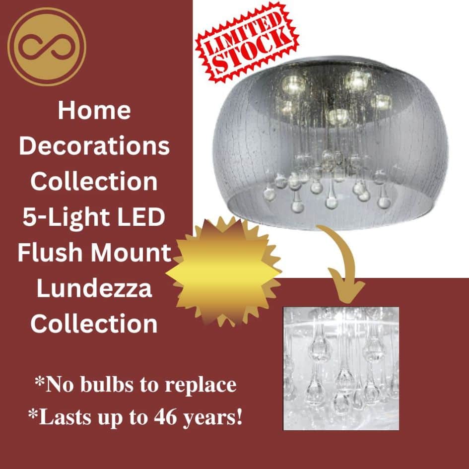 Be the first to review “Lundezza Collection Home Decoration 5-Light Chrome Glass With Clear Glass Beads LED Flush Mount” Cancel reply
