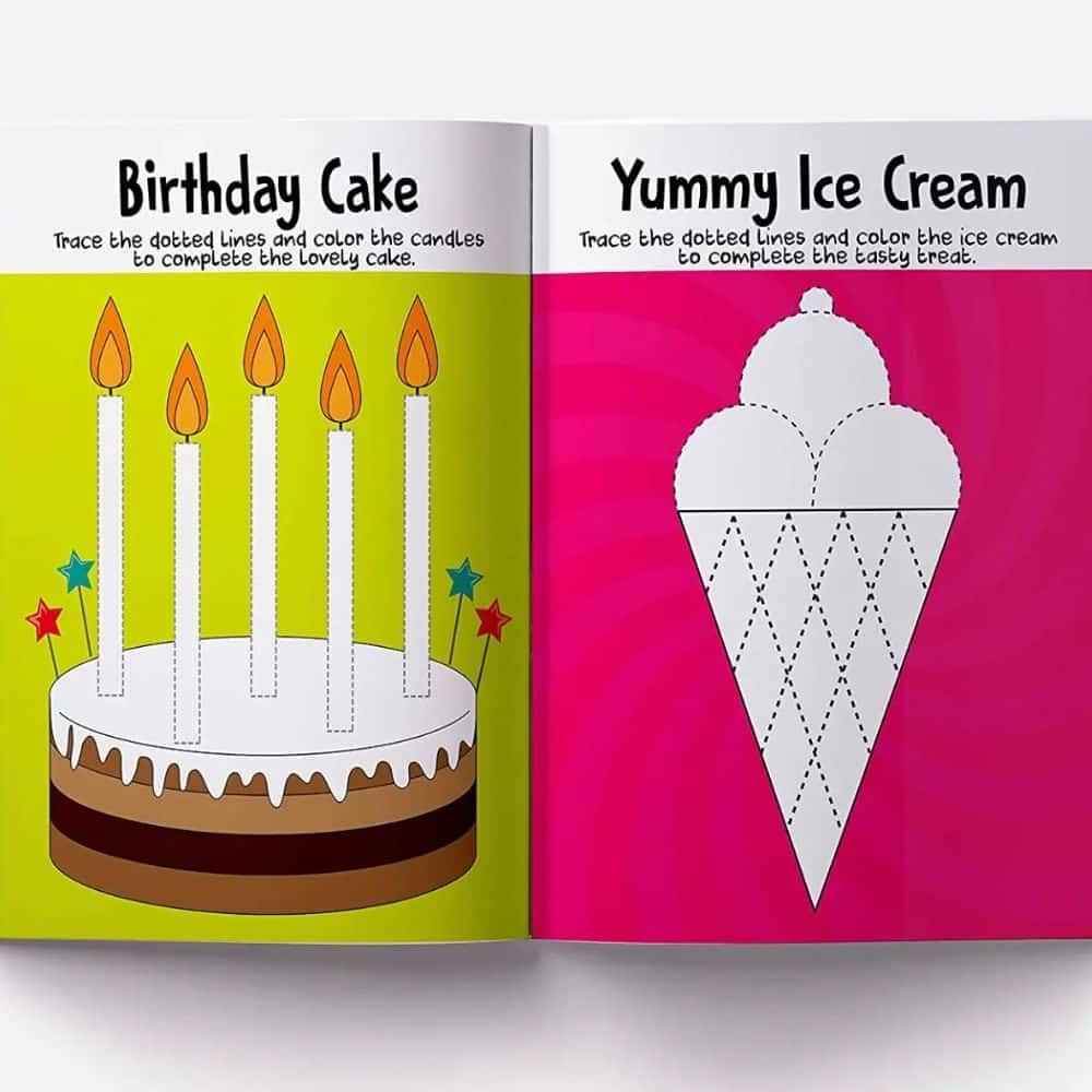 • By following the arrows and tracing the dotted lines, the little scholars can complete the tracing exercises and creative activities leading to development of their early writing skills.