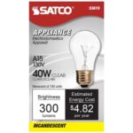 - SATCO 40W A15 Incandescent Clear Bulb for Appliances – Long Life, Four Support Filament, Brass Base