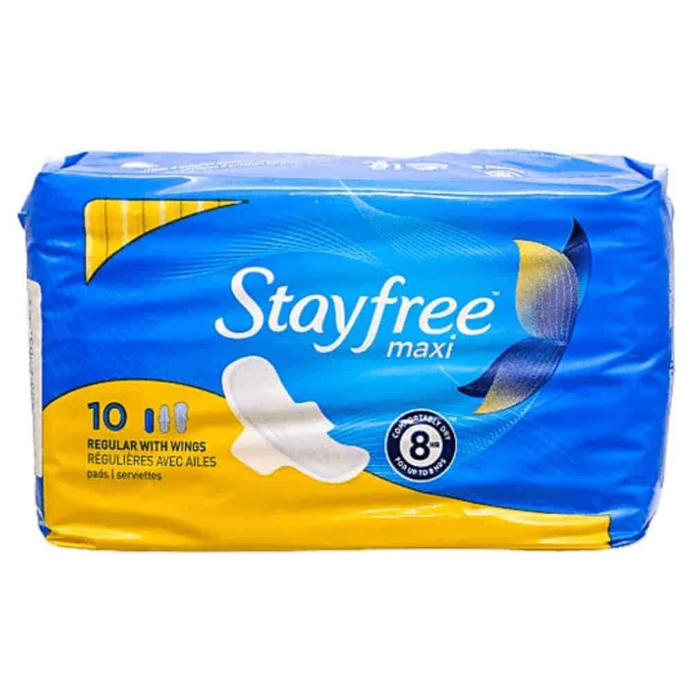 - Stayfree Maxi Regular Pads with Wings feature reinforced four-wall protection, designed for leak protection side-to-side and front-to-back, and anti-leak channels to lock in fluid and help keep you comfortably dry for up to 8 hours. So worry less about leaks and focus on your day!