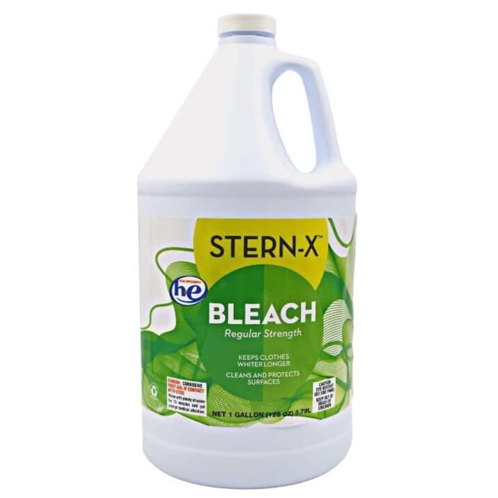• The Stern-X Bleach solution is ideal for use on clothing as well as cleaning and protecting surfaces. It is excellent for use with regular and HE standard machines delivering bright and longer lasting whites in clothing, while keeping your home clean, disinfected, and free of bacteria viruses.