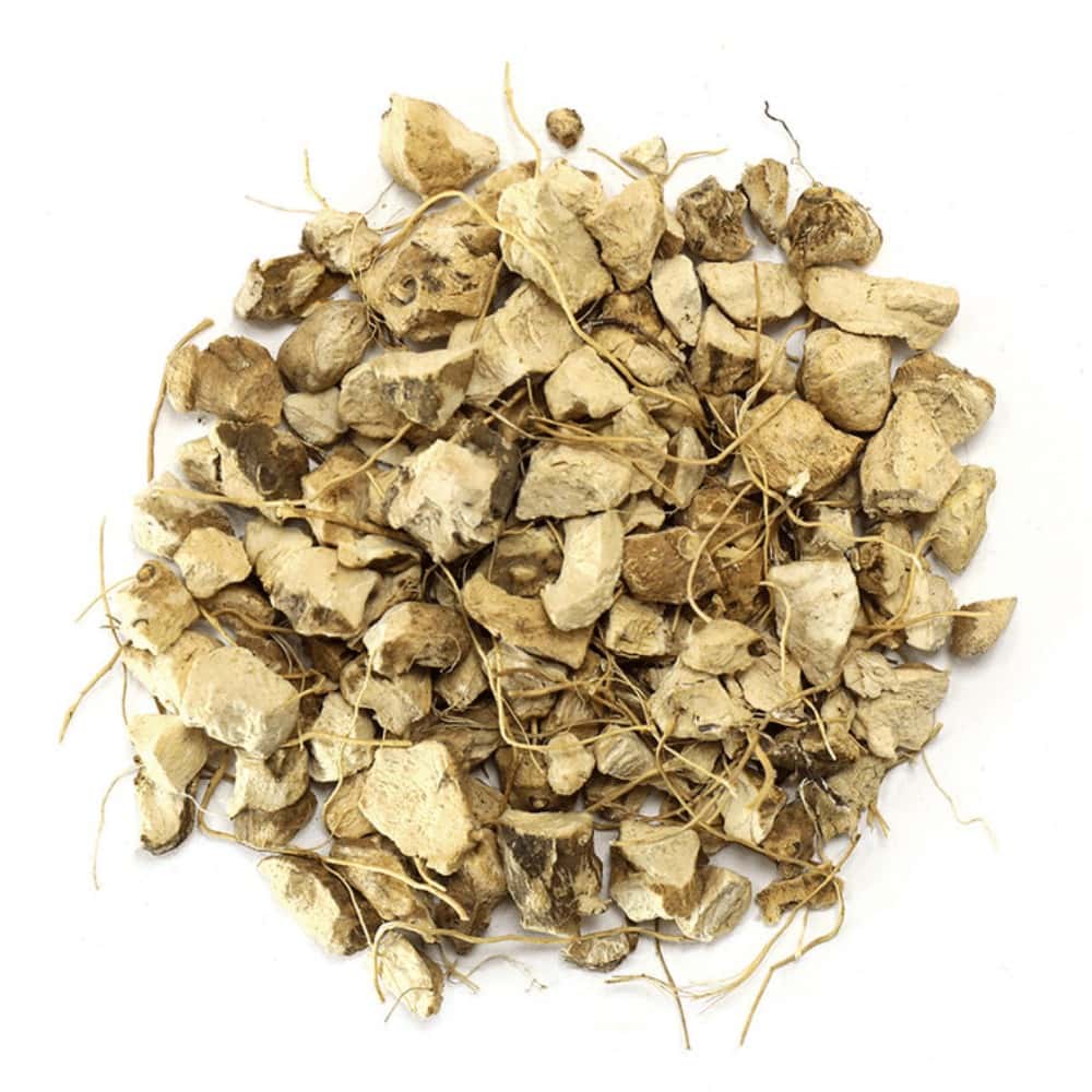 DESCRIPTION:Ā Wild yamĀ is a climbing vine that is native to Central and North America and some parts of Asia. Although the heart-shaped leaves have aĀ vanillaĀ scent, it is the bitter root that is targeted for harvest. In contrast to other yams, however,Ā wild yam has a non-edible, fibrous and knotted rhizome that is dried instead.Ā Typical preparations of wild yam root include decoction or maceration as a liquid extract. Oftentimes wild yam is incorporated into multi-herbal formulations.